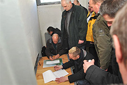 Zu besichtigen waren das Gebäude der ehemaligen Disziplinareinheit mit seinen Unterkunftsräumen, Waschräumen und die noch original erhalten gebliebenen Arrestzellen. |