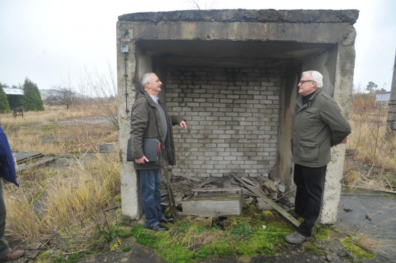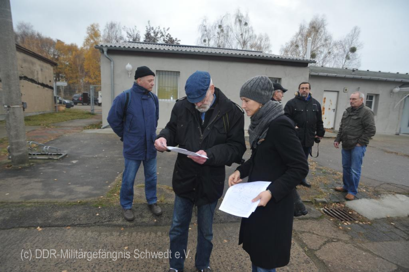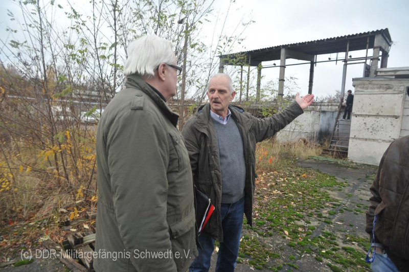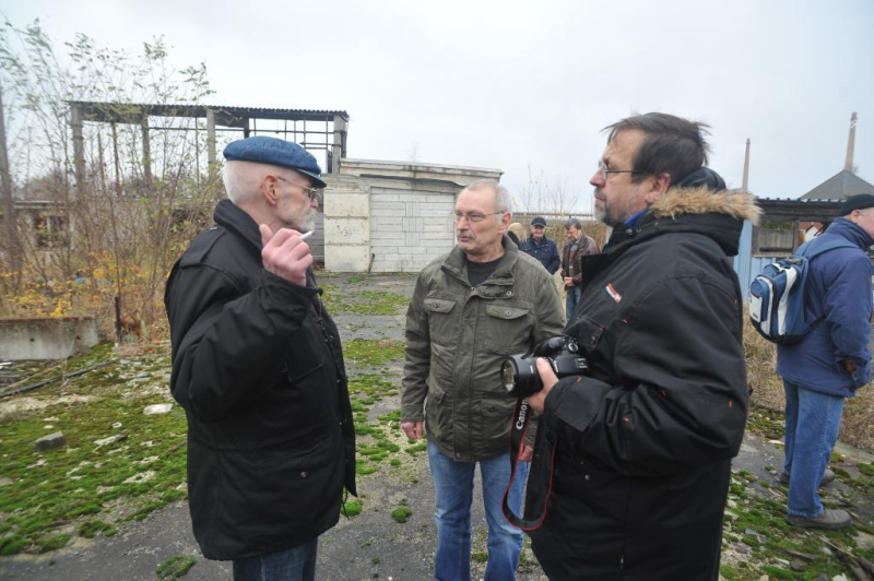 Am 23. November 2013 besuchten gemeinsam ehemalige Gefangene und damals zivil Beschäftigte die steinernen Reste des ehemaligen Betonwerkes auf dem Gelände des PCK in Schwedt.